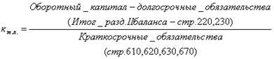 Анализ и оценка структуры баланса предприятия проводится на основе показателей: коэффициента текущей ликвидности; коэффициента обеспеченности собственными средствами.