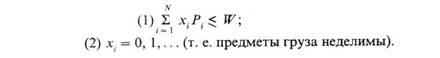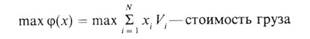 Рi—вес одного предмета i-го типа; Vi — стоимость одного предмета i-го типа; xi —число предметов i-го типа, загружаемых на имеющееся транспортное средство.