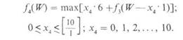 Найдем последовательно значения функций b1(W): f1(W), f2(W), f2(W), f3(W), при различных значениях W(0< W<10).