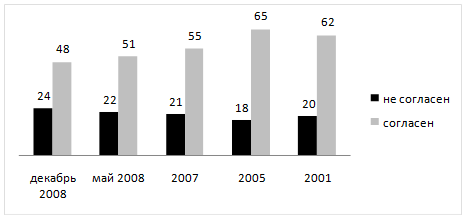В то же время оценки положения в стране, а также ожидания от 2009 г. резко упали. Так, для страны в целом уходящий год посчитали хорошим 36% опрошенных, а плохим – 18%, в то время как в 2007 г. – 53 и 9% соответственно. По этому показателю, вернулись на уровень 2003 г. (Рисунок 6).