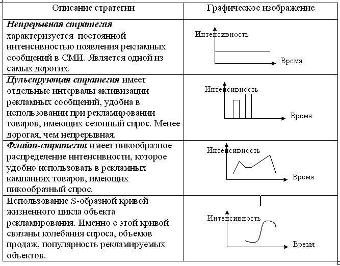 Существуют различные стратегии рекламной кампании по времени (табл.3.2.) [1, с.71].