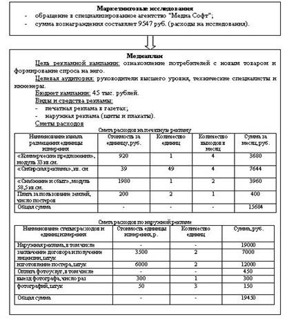 Кроме того, в процессе выполнения дипломной работы были разработаны рекомендации, которые позволяют существенно повысить эффективность рекламной деятельности в современных условиях хозяйствования.