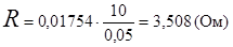 – удельное сопротивление меди (0,01754 мкОм×м),