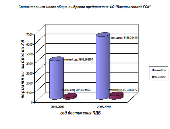 Таблица 26 - Сравнительная масса общих выбросов предприятия АО «Васильковский ГОК»