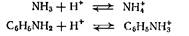 При титровании веществ второй группы соляной кислотой в конце титрования раствор должен содержать соответствующие этим основаниям положительно заряженные ионы, например;