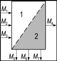 - в случае продукционной системы с открытым контуром переработка материалов (или продукции) осуществляется в другой продукционной системе, тогда распределение данных осуществляется в соответствии с процедурой, изложенной выше на основе физических свойств материалов, их экономической оценки (например, стоимости), количества возможных циклов переработки (рис. 3).