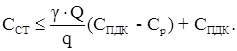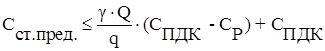 Из этого уравнения можно найти максимальную (предельную) концентрацию, которая может быть допущена в СВ Сст. пред, при которой после их смешения с водой водоема в расчетном створе или у первого расчетного пункта водопользования степень загрязнения не превзойдет установленного предела СПДК: