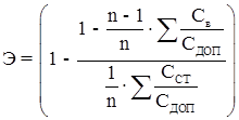 – концентрация загрязнения одинакового вида соответственно в СВ и в реке до места спуска СВ;