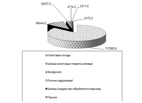 Рис. 1. Структура образования отходов производства в 2007 г. (без учета галитовых отходов и глинисто-солевых шламов), тыс. т