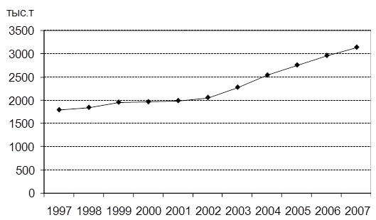 Рис. 5. Динамика образования коммунальных отходов на территории Беларуси в 1997-2007 гг.
