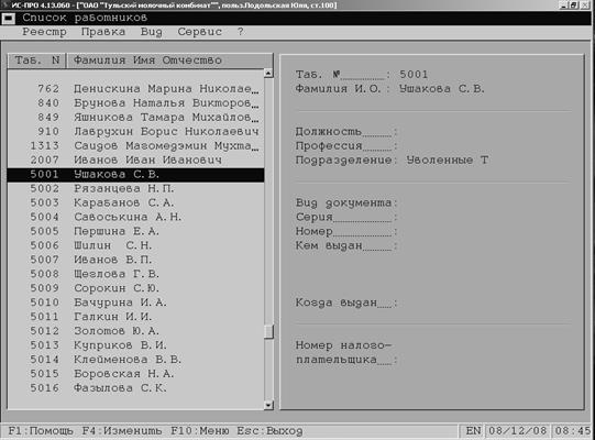 Рис. 3.6. Справочник «Список работников»