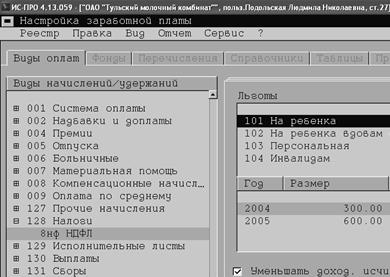 В процессе изучения ведения бухгалтерского учета в организации было выявлено, что на счете 70 «Расчеты с персоналом по оплате труда» в основной базе предприятия не ведется аналитический учет по физическим лицам, по всем видам заработной платы, премиям, пособиям и другим выплатам и удержаниям (налогам, платежам и др.). Для этих целей предусмотрен отдельный блок по учету заработной платы, доступ к которому ограничен. Таким образом на ОАО «Тульский молочный комбинат» осуществляется контроль за сохранностью бухгалтерской информации. Однако для целей управленческого учета необходимы данные обо всех видах заработной платы и удержаний из нее.