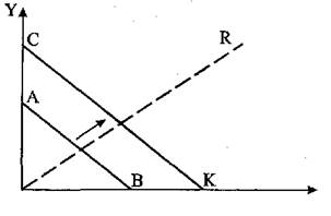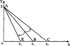 домашнее хозяйство сможет купить меньше товара X. Бюджетная линия АВ начнет вращаться вокруг точки А по часовой стрелке и займет положение АК (рис. 3).