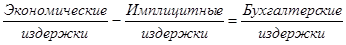 Различают издержки экономические и бухгалтерские. Под экономическими издержками понимаются все виды выплат фирмы поставщикам за используемые ресурсы. Они состоят из двух видов: внешних (явных, или денежных) и внутренних (неявных, или имплицитных).