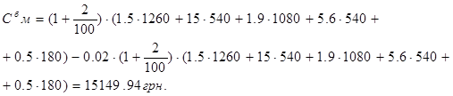 Рmр – відсоток транспортно- заготівельних витрат на матеріали(2%);