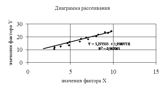 построить диаграмму рассеивания и подтвердить гипотезу о линейной зависимости