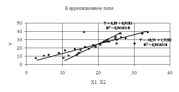 2. На основе данных таблицы1 строим диаграмму рассеивания.