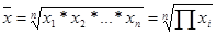 Средняя геометрическая исчисляется извлечением корня степени и из произведений отдельных значений — вариантов признака х: