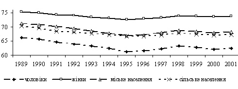 На відміну від економічно розвинених держав в Україні (як і в колишньому СРСР) з кінця 60-х рр. тривалість життя населення зазнавала хвилеподібних змін - періоди зниження смертності змінювалися її зростанням.