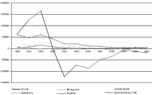 Зазначені процеси розвивалися і впродовж 90-х рр. Йдеться про бурхливі міграційні процеси, викликані розпадом єдиної держави і появою можливостей вільного переміщення населення у межах і за межі території країни; зниження народжуваності внаслідок передусім економічних і соціо психологічних чинників; зростання смертності населення працездатного віку при стагнації показників у після працездатному віці і зниженні у до працездатному. Проте, починаючи з 2001 р., зростає середня тривалість життя.