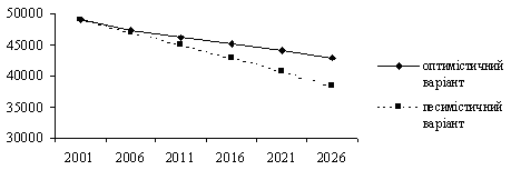 Рис. 2.1 Загальна чисельність населення, тис. осіб на початок року