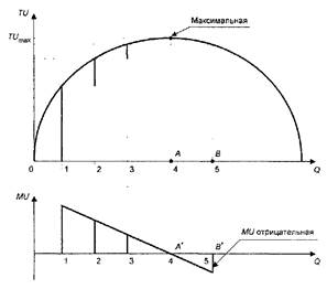Рис. 1 График а) общей б) предельной полезности [2, с.138]