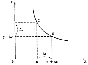 ) называется количество блага У, на которое должно быть сокращено его потребление "в обмен" на увеличение количества блага X на единицу, с тем чтобы уровень удовлетворения потребителя остался неизменным. Графически предельная норма замещения представлена на рисунке 3.