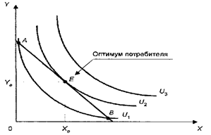 Данные наборы товаров имеют одинаковую полезность (равноценны), так что если соединить все точки, обозначающие в пространстве наборы двух товаров X и У, то получим линию равной полезности (кривую безразличия) — (U1, U2, U3) (рис.2).