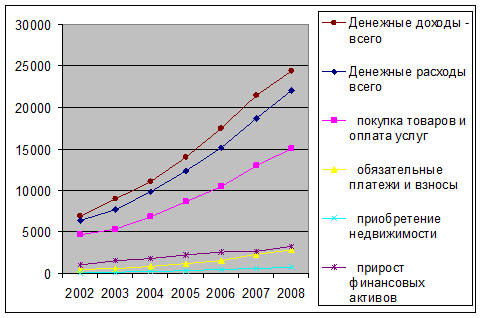 Динамика и структура денежных расходов и доходов за 2002-2007 гг.