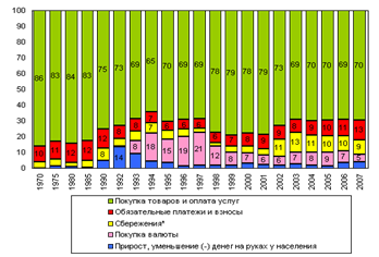 Т.В. Черновой, «Политика доходов и заработной платы» Подоваловой Р.Я., Абакумовой Н.Н., «Социальная статистика» - учебник под ред. И.И Елисеевой, «Основы экономической теории. Макроэкономика» Кравцовой Г.Ф. Вопросам изучения уровня жизни населения посвящены труды многих российских ученых. Это работы В.Н. Бобкова, В.А. Литвинова, Н.А. Смирнова, Гулюгина А.А., Алексеевой О.А., Жеребина В.М., Землянской В.Н. Труды Бобкова В.Н. посвящены методологии использования международных стандартов и индикаторов при характеристике уровня жизни россиян, региональному неравенству уровня жизни, вопросам преодоления бедности населения. Также в данной курсовой работе используются различные статьи на эту тему, часто появляющиеся в газетах и журналах («Ведомости», «Коммерсант», «Российская газета», «В курсе правового дела», «Управление персоналом», «Московский комсомолец»). Основными источниками показателей в курсовой работе являются статистические данные, предоставленные Федеральной Службой Государственной Статистики (Росстат), Минздровсоцразвития, Всероссийским центром уровня жизни (ВЦУЖ), Всероссийским центром изучения общественного мнения (ВЦИОМ). Теоретический материал взят также из электронных энциклопедий (wikipedia.ru, academic.ru), также использовались нормативные акты - Федеральный закон от 24 октября 1997г. № 134-ФЗ "О прожиточном минимуме в Российской Федерации", Трудовой кодекс РФ, Ф.З. «О потребительскй корзине в целом по Российской Федерации» от31 марта 2006 года N 44-ФЗ.Данная курсовая работа состоит из введения, трех вопросов, списка литературы и приложения. 1. Уровень жизни населения: основные показатели и их динамика в России