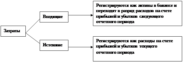 Для определения себестоимости произведенной продукции и полученной прибыли необходимо различать входящие затраты и истекшие затраты. Входящие затраты — это средства, ресурсы, которые были приобретены, имеются в наличии и, как ожидается, должны принести доходы в будущем. В балансе они регистрируются как активы. Если эти средства (ресурсы) были израсходованы для получения доходов и потеряли способность приносить доход в дальнейшем, то они переходят в разряд истекших, что отражается на счете прибылей и убытков. Например, затраты на производство товаров для перепродажи, если эти товары не реализованы и хранятся на складах, регистрируются в балансе как входящие. Если же данные товары проданы, то эти входящие затраты должны быть отнесены к истекшим, что отражается в смете затрат, понесенных в результате реализации товаров. Их следует сравнивать с доходами от продажи для того, чтобы определить прибыль. Разница между истекшими и входящими затратами показана на рис. 1.1
