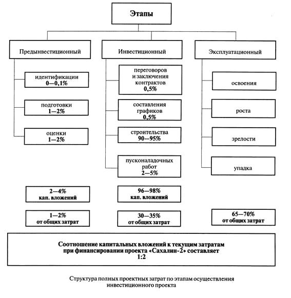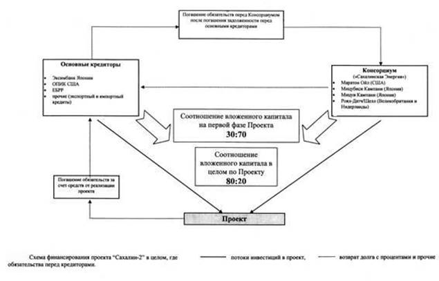 Стоимость первой фазы освоения проекта «Сахалин-2» (по состоянию на апрель 2000 г.) составляет 1,2 млрд. долл. Организация ее финансирования является следующей: