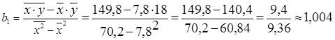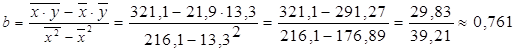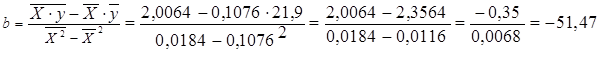 Коэффициент регрессии показывает среднее изменение результата с изменением фактора на одну единицу.