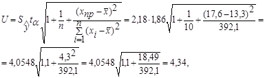 6. Осуществить прогнозирование среднего значения показателя при уровне значимости , если прогнозное значения фактора Х составит 80% от его максимального значения.