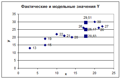 7. Представить графически: фактические и модельные значения точки прогноза.