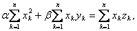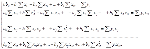 -мерном пространстве, отклонение результатов наблюдений от которой были бы минимальными. Используя для этого метод наименьших квадратов, получаем систему нормальных уравнений: