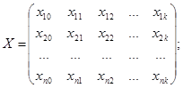 или в виде матрицы результатов наблюдений: