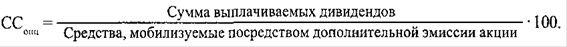 Цена капитала при дополнительной эмиссии акций может быть определена из выражения