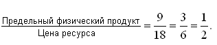 Чтобы максимизировать прибыль на конкурентном рынке, фирма должна использовать такую комбинацию ресурсов, при которой их цена равна их предельному денежному продукту (предельный денежный продукт