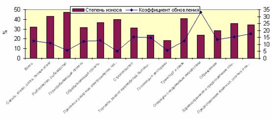 Вследствие низкой инвестиционной активности в этом направлении, как иностранных, так и отечественных инвесторов отмечается крайне низкий уровень обновления основных производственных фондов, постоянно растет доля физически изношенного и морально устаревшего оборудования. Средний возраст основных производственных фондов в промышленности по предварительным оценкам составляет более 17 лет.