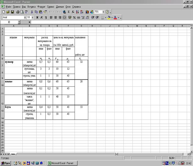 рис.2.1. Фактические данные о расходе материалов ателье – мастерской «Сулава» за январь 2006г