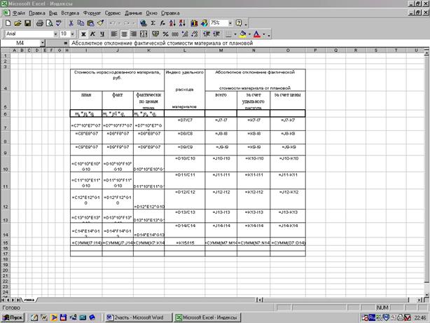 Денежные расходы предприятия на материалы в соответствии с исходными данными определяются удельным расходом материала и уровнем цен на эти материалы. Статистика изучает этот процесс с помощью системы взаимосвязанных индексов: