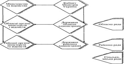 Територіальне управління здійснюється на трьох рівнях: загальнодержавному, місцевому (Автономної Республіки Крим, областей, міст Києва і Севастополя та адміністративних районів), місцевого самоврядування (село, селище, місто, адміністративні райони в містах обласного підпорядкування ). Слід зазначити, що рівні політичного і адміністративно-територіального поділу, а також меж місцевого самоврядування є базовими для створення територіальних органів управління та місцевого самоврядування.