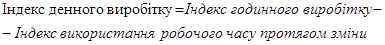 Годинний виробіток характеризує продуктивність праці за фактично відпрацьований час. Денний залежить також від тривалості робочого дня і використання робочого часу всередині зміни. На його рівень впливають внутрішньозмінні простої та збитки часу.