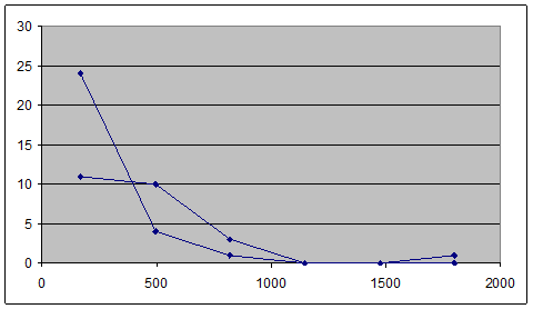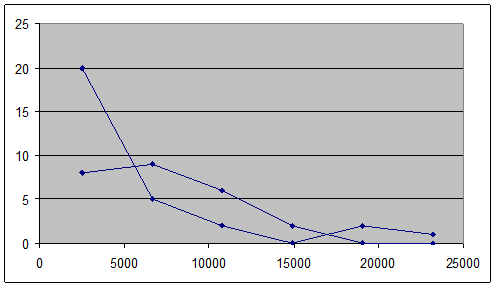 r = (21 – (6–2–1))/Ö(2*(6–2–1))= 7,3 > 3, следовательно, что гипотеза о соответствии распределения банков по размеру прибыли закону нормального распределения отвергается.