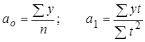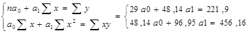 Уравнение прямой, представляющее собой трендовую модель искомой функции, будет иметь вид: