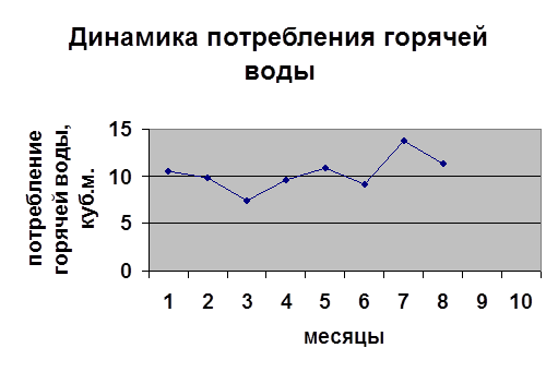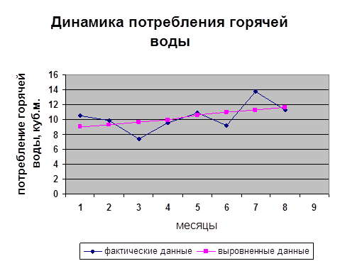 Полученное уравнение показывает что, несмотря на колебания в отдельные месяцы, наблюдается тенденция увеличения потребления горячей воды.