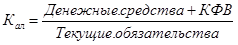 КФВ - краткосрочные финансовые вложения Текущие обязательства - это сумма кредиторской задолженности и краткосрочных кредитов и займов.
