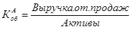 Для того, чтобы вычислить коэффициент оборачиваемости активов можно использовать формулу: