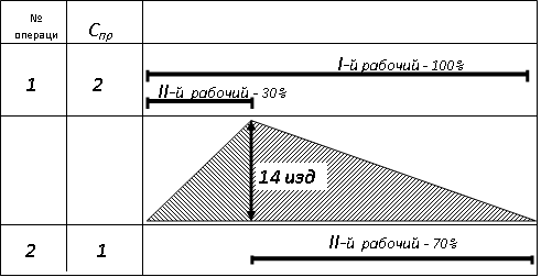 Что нужно сделать, чтобы повысить пропорциональность процесса? Имеются четыре направления: 1) пересмотр конструкции детали с целью обеспечения пропорциональности операций по трудоемкости; 2) пересмотр технологического процесса, режимов обработки; 3) разработка и реализация организационных мероприятий по замене оборудования, перепланировке участка; 4) дозагрузка рабочих мест другой аналогичной деталью.